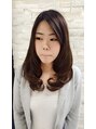 上品な柔らかさがでるよう裾に重さを残してととっぷにレイヤーを入れたあと全体にストロークカット。色味は赤味をおさえるために色味を調合。