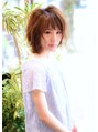 夏にピッタリのレイヤーショートです。毛先の軽い質感とショートバング、外ハネベースのパーマで夏らしいアクティブな印象のショートヘアです。