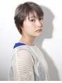 - トップを動きをだして、分け目を消すショートカット。根元から毛先まで、優しくブリーチ。