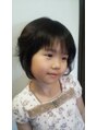 お子様カットお母様のご要望の軽くスッキリお子様のご要望クルクルしたい。前下がりラインで軽く重くならないようにしました可愛くポーズしてくれました一人で座れないお子様はお母様と一緒にしますよ