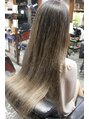 ブリーチを2回した後に、パール系アッシュ、ブルー系アッシュ、グレージュをMIXしたブレンドカラー。自然にグラに仕上げることでおしゃれ感、こなれ感が出ます。