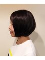 ショートボブで前髪ちょいアシンメトリー。短め前髪でもコンパクトに、スッキリしたイメージになります。