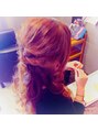 ヘアセット ハーフアップスタイルなんですが、人と差をつけるために真ん中はの部分はフィッシュボーンを作ってみました!!カールの中に可愛いく編まれているフィッシュボーンがオシャレに見えます!!