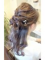 結婚式のお呼ばれセットです♪ルーズにロープ編みを重ねて、後ろにリボンを作りました(^_^)作り込みすぎず、崩し感が可愛いアレンジです♪
