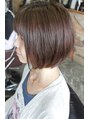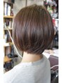 直毛の方で耳後ろの髪が多くてトップがペチャっとしてしまう方って多いですよね。。そんな方でも骨格補正カットなら自然な円みのあるシルエットが出せます。ドライカットや梳きバサミでは出せないこのカタチです。カラーは人気のモーヴ。