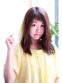 透明感のあるアッシュ系のカラーとやりすぎないくらいのリラックスウェーブが暑い季節にピッタリのセミロングスタイル。短めのベビーバングで可愛らしさをアップさせます。きめすぎない、自然体がテーマの人気スタイルです。センターパート、耳かけOK。