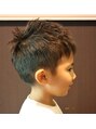 サイドをしっかり刈り上げ、トップ中央を残したソフトモヒカン!刈り上げの具合によっては、甘い顔立ちの彼にもピッタリ♪これからの季節におススメです!