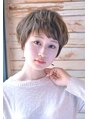 束感と柔らかさがでるように丁寧にカット。カラーはマロンベジュで触れてみたくなるような柔らかな質感をだす。髪の癖をみてカットしているので、乾かすだけで決まるお手入れ簡単スタイルです。くびれ フェザーボブ 大人かわいい グレージュ 流し前髪