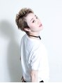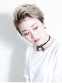 夏に向けてお勧めなベージュカラーをグラデーションカラーで!ハイトーンカラーと根元のダークトーンでコントラストを効かし、立体感を演出。アシンメトリーにカットした斜めバングで片サイドを耳かけして、個性的なエアリーショートに!!!