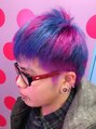 おしりん君です。初めてのカラーでこの派手さ!!ピンク×パープル×ブルー のきゃんしろ鉄板カラーです♪メンズだってがっつり派手髪かっこいいんです!ピアスも似合っててかこいいし最高ですね(^^♪