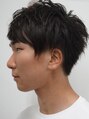 ツーブロックに少しアシンメトリーです!後ろはバリカンで刈り上げずに極力短くすることですこし大人っぽくなる印象になります。