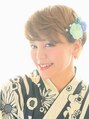 ショートでも軽く巻いて、耳にかけて夏らしくお花のアクセで彩る事で浴衣スタイルも華やかになります。