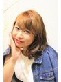誰からも好感度が高い、ゆる巻きヘアー。前髪は、厚めの斜めバングで似合わせカット!顔周りには外ハネも加えてカジュアル感を出しています。シースルーバングや斜め前髪で小顔効果が期待できる、大人可愛くも、甘い愛されヘアスタイルです。