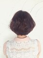 前下がりのショートボブです!!後ろはすっきりとしてて、前から見るとボブスタイルになってます!全体にレイヤーが入っているので巻いた時にふわっとした動きとやわらかさがでるようにしてあります!