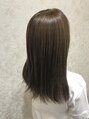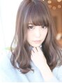 柔らかい雰囲気のクリームアッシュのカラーで透明感アップ。カットはセミロングの人気ヘア。