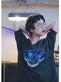 color : ダブルカラーでブリーチ後にダークパープルグレをオン* cut :ショートマッシュ+ショートバング *最後に「丸メガネ」をかければ出来上がり*