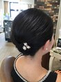 シンプルに夜会巻きスタイルです♪少しかっちり目の式やイベントなどにとても似合います(^^)