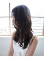 全体はおさまりのよいローレイヤー重めスタイルです☆ルーズなカールが無造作感と女性らしさをプラス♪カラーは透明感を意識したアッシュ系☆