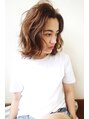 大人可愛いかきあげバングに、ラフなニュアンスパーマで外国人のようなクセを!人気のロブ!伸ばしかけで跳ねやすい長さも外ハネボブでウェットなオイルワックスでスタイリング!カラーはイルミナカラーで、ベージュブラウンに!