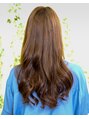 飾りすぎない、ゆるいウエーブが好評度大!!親しみやすい雰囲気なのは、キメすぎないウエーブのパーマが決めて!!アッシュにブルーをまぜたヌーディーカラーがカールにマッチしています!