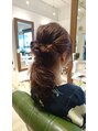 タイトロープ、くるりんぱ、ポンパドールを組み合わせた  大人ポニーテールアップになります。