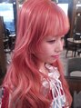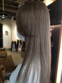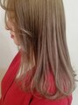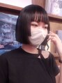 ねじるハーフアップアレンジ。ベースはボブスタイル。ランダムにウェーブアイロンでくせをつけてからセットしています。