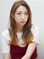 ワンレングスのロングヘアスタイル。全体はアッシュ、毛先はワンブリーチ後、イエローでカラーリング。変わりばえしなかったロングヘアから人とは違うデザインにシフトできるスタイルです。