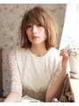 小顔に見える厚めバングで斜めバング。流し前髪の大人かわいいアンニュイカールなフェザーボブ。長めボブです。くびれミディで毛先はワンカールで巻いてます。無造作な、ふわミディのロブスタイルで伸ばしかけや黒髪、センターパートでも個性的です。