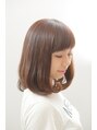 厚めのアウトラインのボブ。大きめロットで内巻きにパーマをあてる。