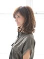 エアリーなミディアムスタイルです。流し前髪で大人っぽく、毛先のカールで軽やかに柔らかく。いろんな表情を見せてくれるスタイルです。【EARTH 上野】