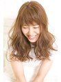 大きめのウェーブパーマ。シルエットは重ためで広がらないように、中間に動きが出るようにカット。アレンジにも最適で髪をまとめるだけでも可愛く仕上がります。カラーはハイライトを入れて立体感を出し、アッシュ系で仕上げてます☆