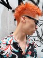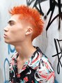 ハイトーン×ビビットオレンジ×フェードカットエッジとパンチを効かせたTOKYOストリートスタイル!ビビットなオレンジはマニキュアではないので、色持ちも◎TOKYOをもっとオシャレにカッコよく。