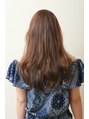 カットはローレイヤーベースのロング。前髪はリップラインに設定してアレンジしやすい長さにしています。カラーは10トーンのモノトーンにハイライトを忍ばせて、動きのあるスタイルに。