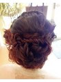 編みこみでカチューシャを作って、後ろはふんわり!さりげなくフィッシュボーンも入っています!間違いないセットですね!