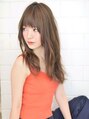 【K-two心斎橋・小顔カット】骨格をフォローするように前髪を作ります。さらに柔らかいカールで直線的な部分をなくし、全体的にサイドにゆるいボリュームが出るようにしました。カラーはオーシャンベージュ。