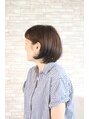 顎ラインボブ頭の形をきれいに見せるため後ろに段を少し入れて丸みが出るようにしました。前髪は、少しアシンメトリーに斜めにカット!眉上にすることでシャープさにそして前髪が伸びてきても目にかかりにくいです。