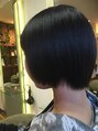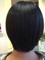 ロングからバッサリとショートにされました!直毛なので毛先を馴染ませるのに多めにすいてあります。前から見ると顎のラインに馴染む長さで、丸い印象になるようになっています!