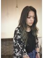全体にブリーチでハイライトとグラデーションカラーでデザイン。その上に、話題のTHROWカラーでくすみを強調するグレーアッシュを入れました。無造作ウェーブでラフさとクールさを出したロングです!個性的でオシャレ!