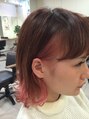 内側だけをブリーチしてピンクに。2色をしっかり分けて染めてますが段の重なりかたでグラデーションに見えます。