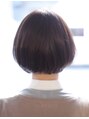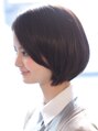 顎ラインのグラデーションボブ。表面のみにレイヤーを入れて、スライドカットで中間から毛先に空気感をプラス。前髪は長めに。 カラーは8トーンのピンクブラウンでツヤツヤを演出!! パーマや巻き髪もオシャレに見えるスタイル。