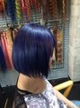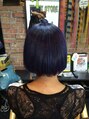 ブルーパープルヘアカラーの刈り上げボブスタイルでございます。