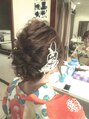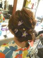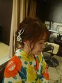 センターはクルりんぱ サイドからバックまでツイストでまとめ、少しずつ髪を引き出してゆるゆるスタイルにしあげました。