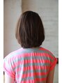 小顔に見える前下がりフェミニンボブ。伸ばしかけの方にもオススメのナチュラルボブです。カラーはイノセントカラーで透明感と無造作感をだして。