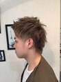 ツーブロック3ミリに毛先が動くようかなりすいてあります。カラーはブリーチオンカラーです。ブリーチ後アッシュ系のカラーをのせています。