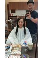 ロングヘアーをバッサリイメチェン☆前髪長めの前下がりボブで顔回りを出しすぎずに色んな顔型でも似合うように☆前下がりでもアゴ下を重くせずに軽くすると、重みが上がって若々しく見えますよ♪