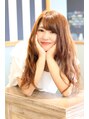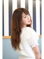 リップラインから下にエアウェーブヴィータで外国人風なゆるいパーマがかかっているので、ロングでも軽めの質感でさらに斜めバングで小顔に見える効果あり。