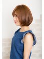 大きく内巻きにしたあごちょい下ボブは明るめカラーでも上品です。