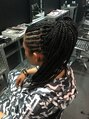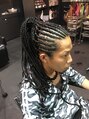 フロントから耳上まではコーンロウ+耳後ろはブレイズのハードスタイル!コーンロウの先にもエクステをつけています!