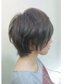 ラフでカジュアルなショート。顔周りは少し長めに残してカッコよくなりすぎず可愛いらしさも。サイドはツーブロックで内側を刈り上げ。カラーは7トーンのネイビーカラーでツヤを残しつつトレンド感をとりいれました。