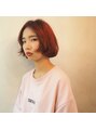 内巻のボブスタイル。深みのあるレッドでかわいさもありつつエッジの効いた女性らしさを出しています。